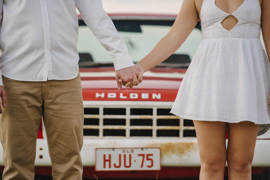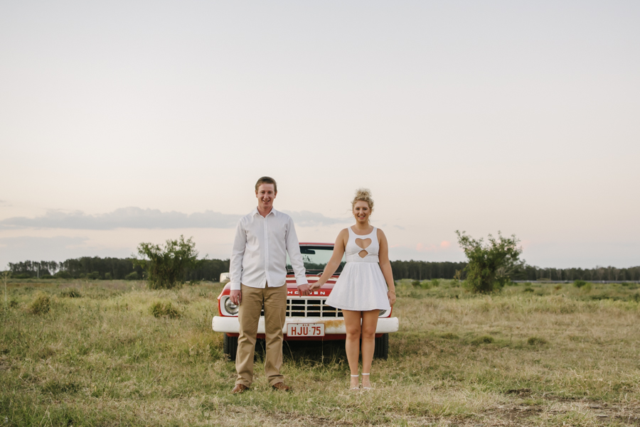 They wanted somewhere special for their engagement shoot, a place to wander in an open field and to also feature Zac’s 1975 HJ Holden (self build since the age of 16 – such a clever guy).
