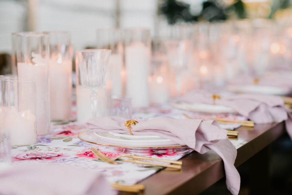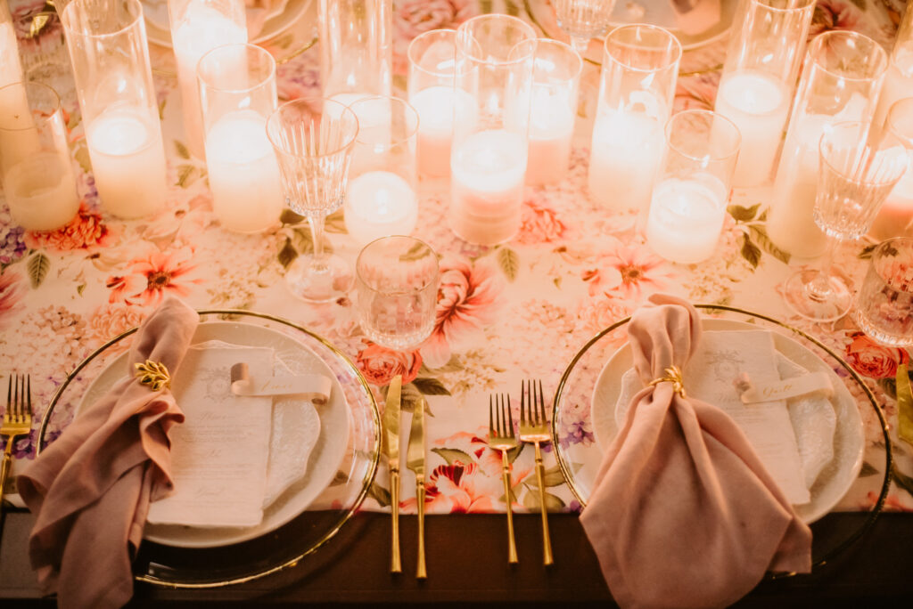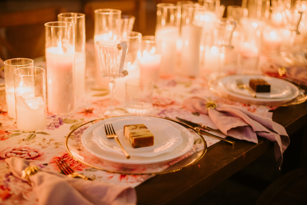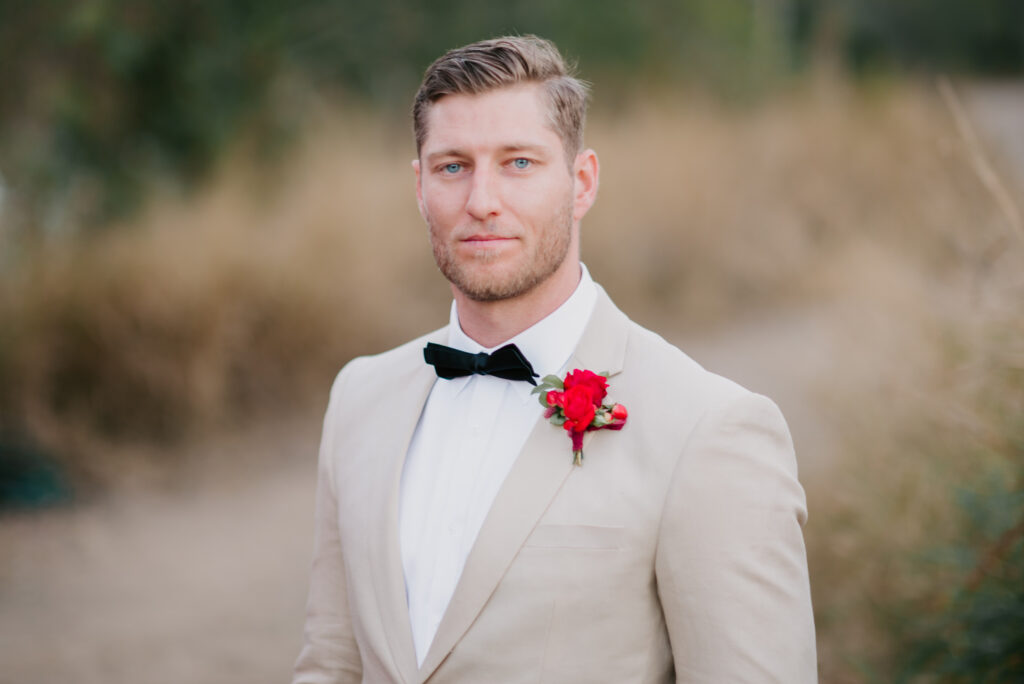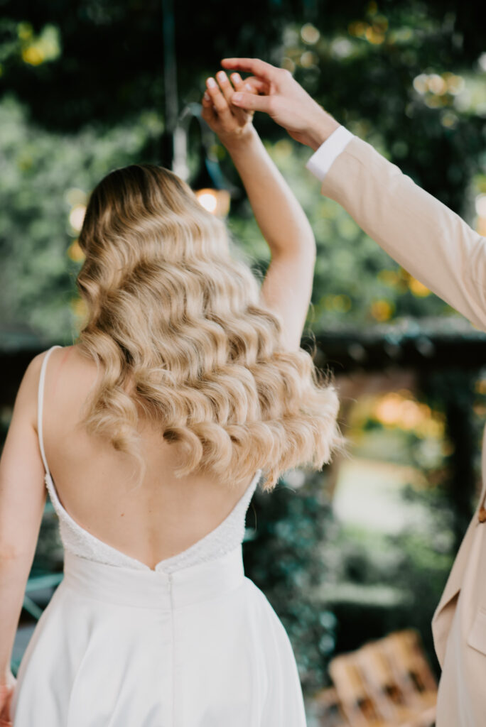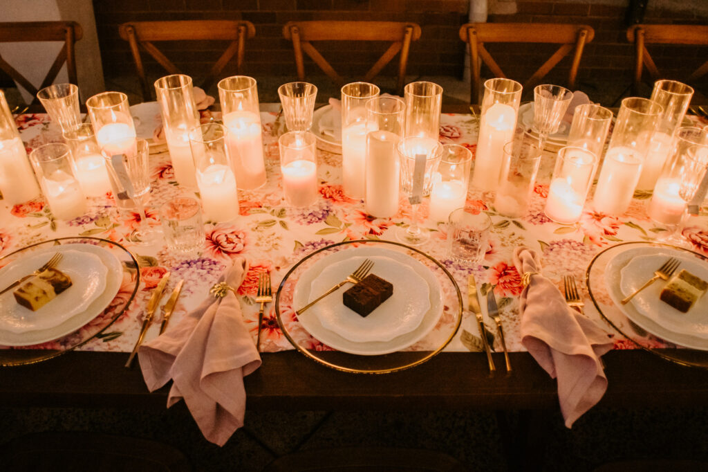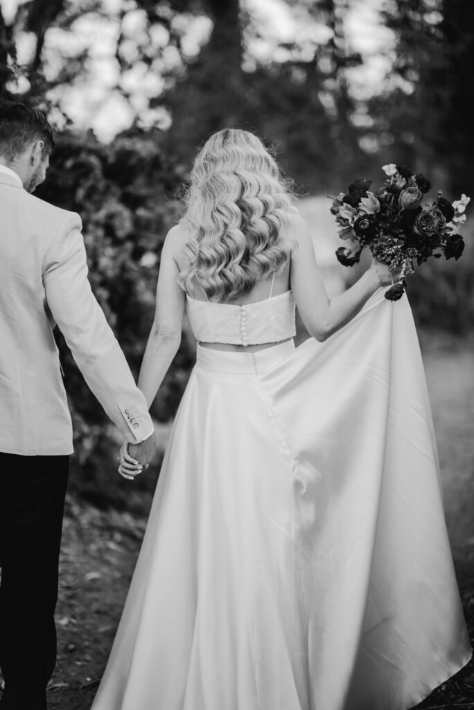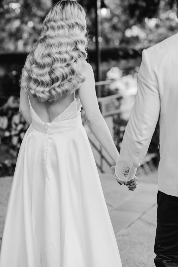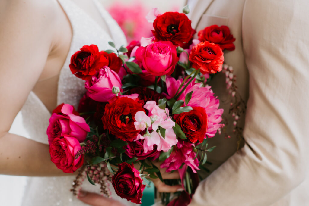Honouring Hillstone St Lucia’s stunning seasonal pink bougainvillea within its grounds, this team was all about showcasing all things feminine, whimsical and romantic. They were also inspired by the elegance of the venue’s unique ceremony and reception spaces. The bride and bridesmaid were dressed in modern and sophisticated beaded gowns sourced from local designer, When Freddie Met Lilly. Their look was adorned with stunning headpieces by The Little Pack of Five. Hair and makeup artist, Bella Brides created a soft and romantic look that embodied the elegance of the shoot. The groom and groomsmen were impeccably dressed in cream suits, also by When Freddie Met Lilly. Held at the Fountain area, the ceremony space was adjourned with pink bougainvillea which cascaded down the fountain and into the water. The bridal party was framed by a stunning collection of blooms with bright pink and red tones. Brisbane City Celebrants brought a beautiful energy and elegance to the ceremony.After the ceremony, the bridal party enjoyed some champagne fun wandering the grounds amongst the wall of bougainvillea. Afterwards, Emunah Events designed a romantic and elegant reception space at The Mango Tree Terrace. It included a beautifully adorned long table under the tree, complete with fairy lights and candles, a pastel floral runner, gold cutlery and gold trim dinnerware. It was a feast for the eyes! The stunning three tier wedding cake, by The Sweet Society Co, was simply striking and adorned with hand made pink bougainvillea petals.We Are Twine’s light and bright imagery was captured with a modern and joyful romance. The team was able to honour the stunning spaces at Hillstone St Lucia along side it’s homage to the pink bougainvillea featured at this time of year.